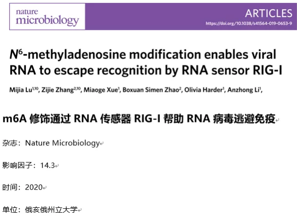 今天為大家介紹俄亥俄州立大學(xué)的 Li Jianrong 團隊和芝加哥大學(xué)何川團隊在 2019、2020 年相繼發(fā)表的兩篇文章,文章研究思路基本一致,都是針對病毒 RNA 上 m6A 修飾機對病毒生命周期的影響和對病毒逃避宿主免疫應(yīng)答的研究,同時發(fā)現(xiàn) m6A 缺陷型病毒株的毒力減弱,但免疫原性依然不變,可作為未來疫苗研制的候選。接下來就讓我們一起梳理下研究思路,以 2020 年 發(fā)表的文獻為例。