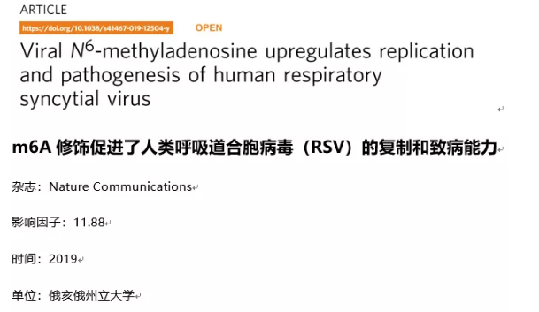 其實在 2019 年何川和 Li Jianrong 就發(fā)表了文章“m6A 修飾促進了人類呼吸道合胞病毒(RSV)的復(fù)制和致病能力”,研究思路與上篇基本一致,但研究對象換了另一種病毒 RSV。