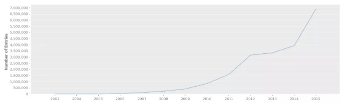 圖 1 DGV 數(shù)據(jù)庫變異數(shù)目逐年增加情況