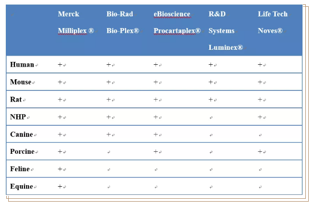 蛋白層面的多因子檢測(cè)服務(wù),我公司采用 Merck Millipore 公司的 Milliplex 高通量蛋白因子檢測(cè)技術(shù),并與默克建立了“Milliplex 蛋白多因子檢測(cè)服務(wù)合作實(shí)驗(yàn)室”。該技術(shù)又被稱為“高通量 Elisa”,具有很高的臨床應(yīng)用價(jià)值,能夠?qū)⒒A(chǔ)研究獲得的生物標(biāo)志物快速實(shí)現(xiàn)向臨床醫(yī)學(xué)的轉(zhuǎn)化。研究顯示,Milliplex 高通量蛋白檢測(cè)技術(shù)和傳統(tǒng)的 ELISA 方法在檢測(cè)結(jié)果中具有高度一致性,保證了該技術(shù)在臨床檢測(cè)中的準(zhǔn)確性和可靠性。